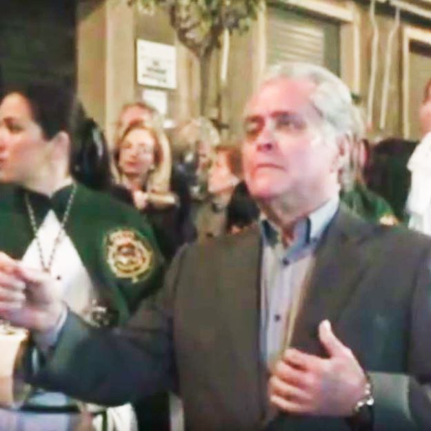 Alfonso Salmerón, canta una saeta por seguiriyas y toná, a la Virgen de la Esperanza, Cofradía de los Estudiantes al inicio de la calle Real frente al bar Casa Joaquin, en la Semana Santa de Almería 2016
