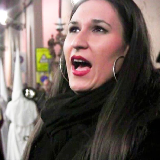 Ana Mar a la Santa Cena, en la Plaza de la Administración, a su paso por el bar Bahía de Palma, en la Semana Santa de 2013 en Almería.