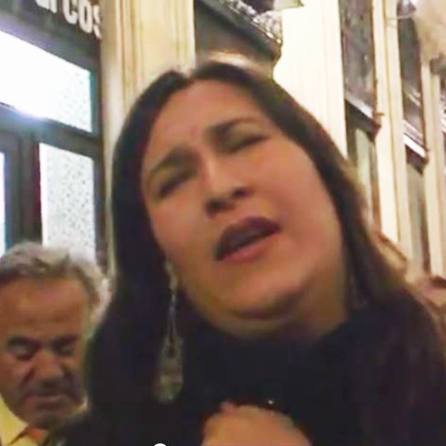 Ana Mar a la Virgen de los Dolores, Cofradía de la Soledad en la Calle de las Tiendas a su encierro en la Iglesia de Santiago, en la Semana Santa de 2009 en Almería.
