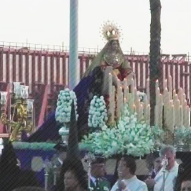 Ana Mar a la Virgen de la Amargura, cofradía de EL Encuentro en calle Reina Regente, A la Puerta del Hotel Almería, en la Semana Santa de 2014 de Almería