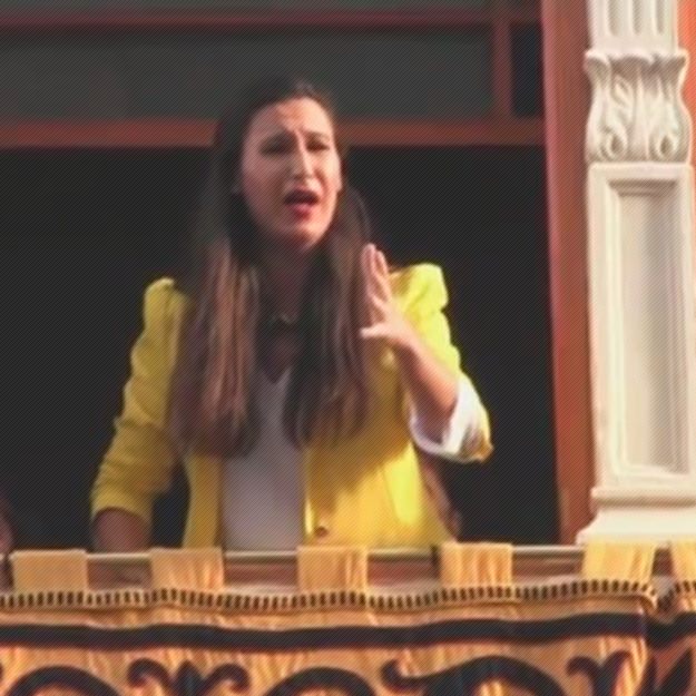 Ana Mar Al Cristo del Amor, en calle Alcalde Muñoz, desde los balcones de la antigua Casa de Socorro, en la Semana Santa de 2014 de Almería
