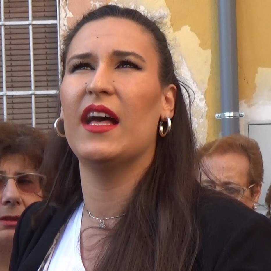 Ana Mar al Cristo del Mar, cofradía del Calvario a la salida de la Iglesia de San Roque en Pescadería, Saeta por seguiríya y tona, Semana Santa 2017.