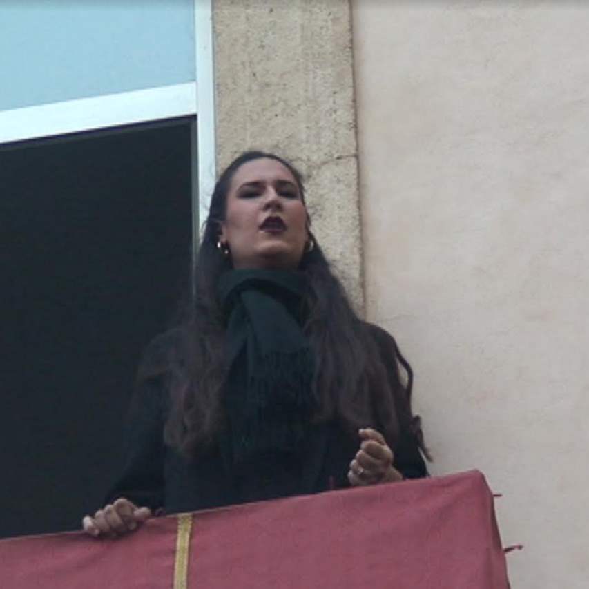 Ana Mar saeta por seguiríya con cambio a tona a María Santísimas de los Ángeles, cofradía Los Ángeles, a su paso por la Plaza de la Catedral, en la Semana Santa de Almería 2017