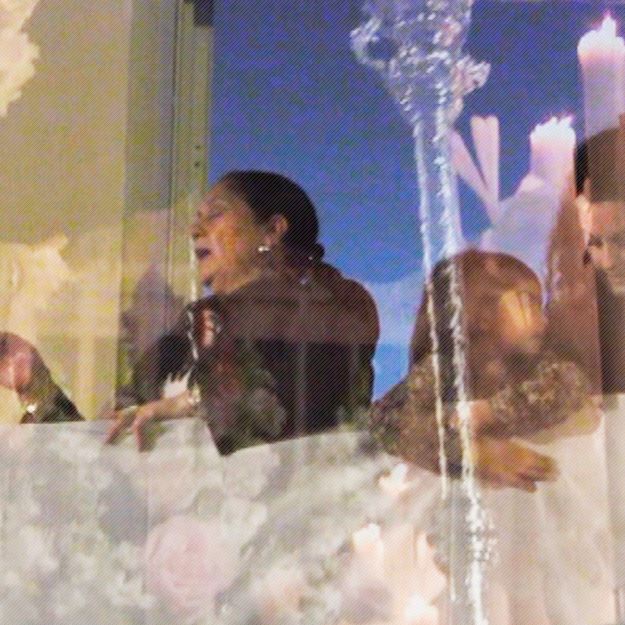 Antonia López a la Virgen de la Esperanza, Cofradía de los Estudiantes, en calle Gerona, desde el balcón de la Sede de la Asociación Contra el Cáncer, en la Semana Santa 2014 de Almería