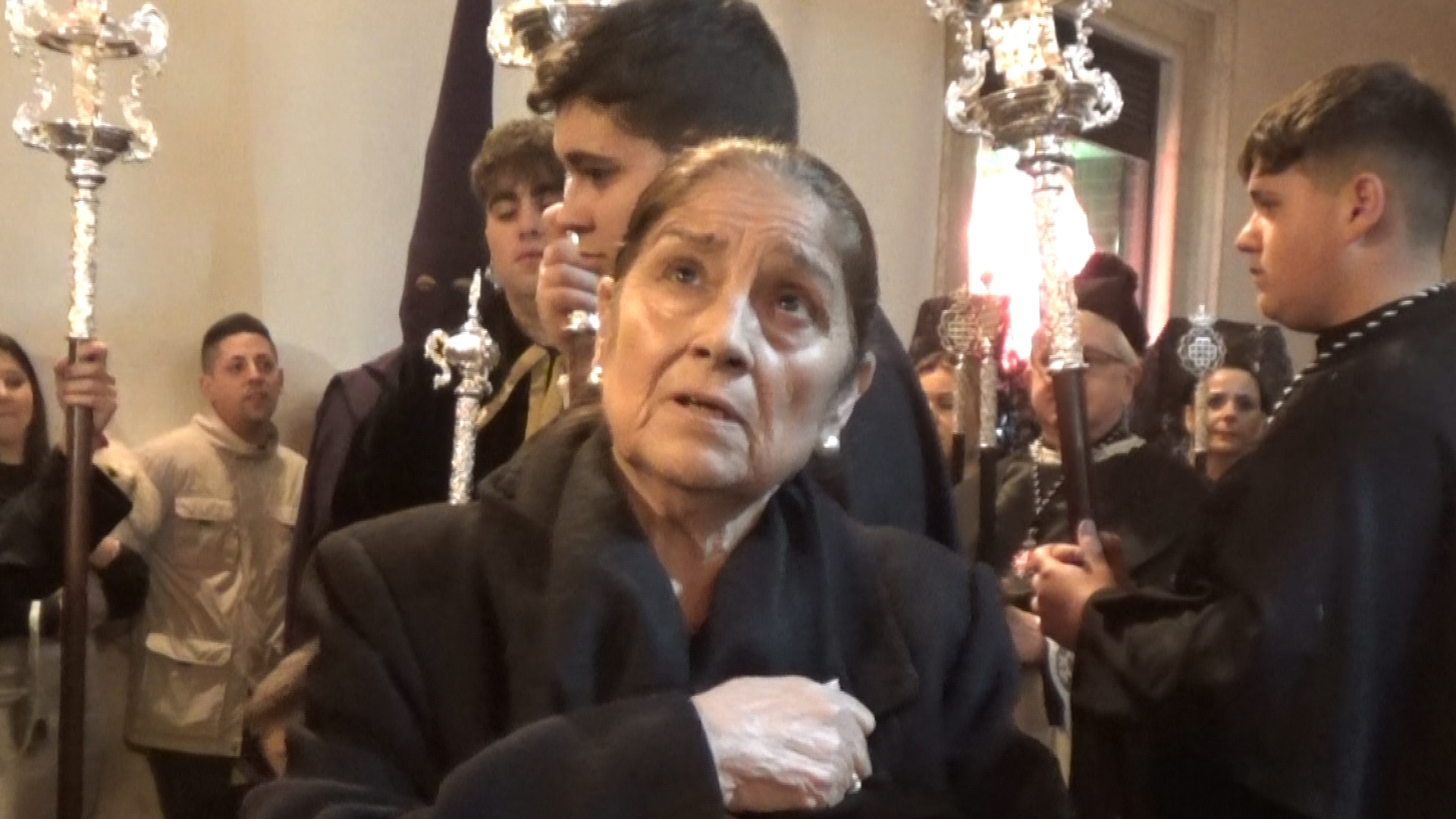 En Almería, Cofradía del Santo Sepulcro a su paso por la plaza de la Administración Vieja, en el Bahía de Palma, el Viernes Santo. Almería 2024