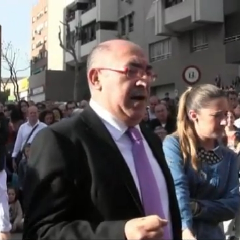 El Niño de la Cuevas a Jesús de las Penas, Cofradía de Pasión, a la salida del templo en Calle Rafael Alberti, en la Semana Santa de 2014 en Almería.