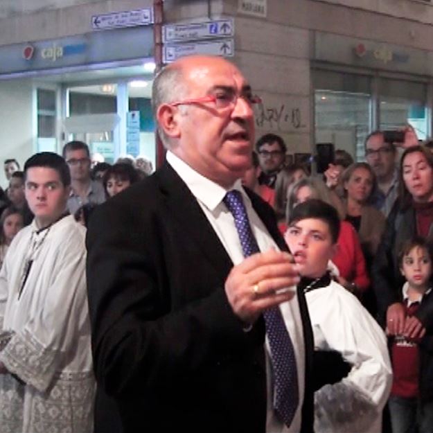 El Niño de la Cuevas a la Virgen del Consuelo, Cofradía del Silencio, a su paso por la Calle Jovellanos esquina calle Mariana, en la Semana Santa de 2014 en Almería.