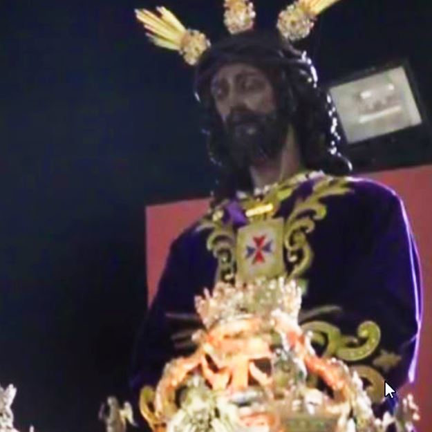 El Niño de las Cuevas al Cristo de Medinaceli, Cofradía del Prendimiento, a su encierro en la Capilla del Prendimiento, desde los balcones de la Casa de Hermandad, Plaza de Jesús Cautivo de Medinaceli., en la Semana Santa de 2013 en Almería.