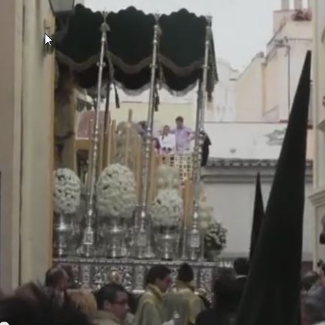 María Canet a la Virgen de la Esperanza Macarena, Cofradía de la Macarena a la salida en calle de Nuestra Señora de las Mercedes, en la Semana Santa de 2013 en Almería.