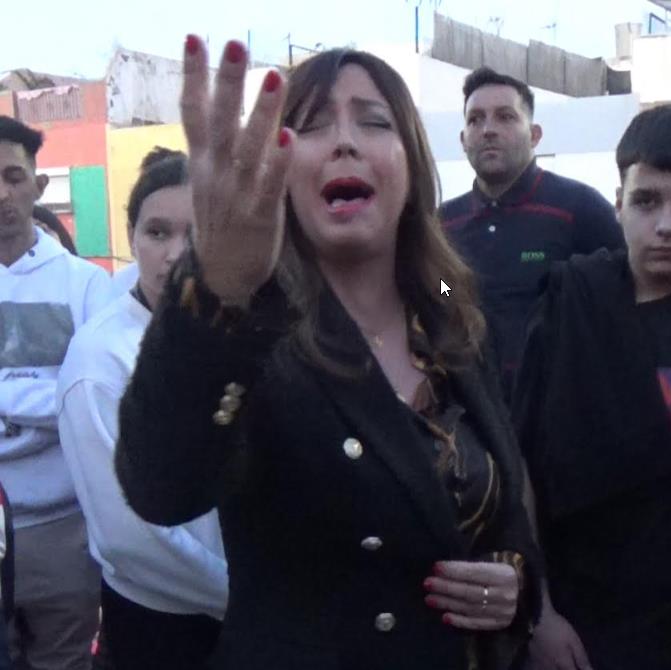 Saeta a la salida de la cofradía de la «Hermandad de Nazarenos del Stmo. Cristo de la Paz y María Stma. de la Unidad» en el Sábado Santo en Almería, Semana Santa de 2023.