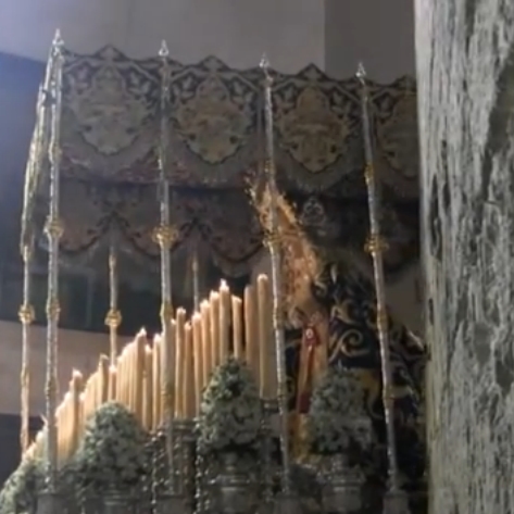 María Canet a Ntra Sra de la Merced, Cofradía del Prendimiento, a su encierro en la Capilla del Prendimiento, desde los balcones de la Casa de Hermandad, Plaza de Jesús Cautivo de Medinacel, en la Semana Santa de 2014 en Almería.