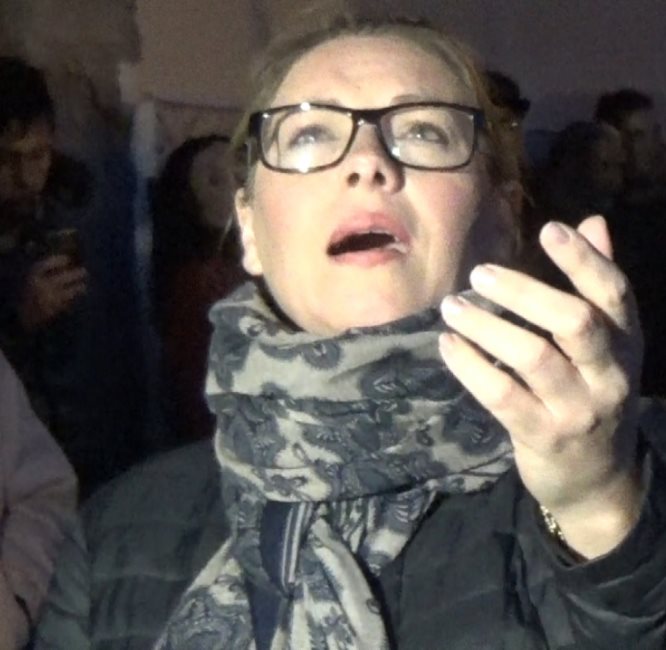 Saeta al Cristo del Camino, Hermandad del Stmo. Cristo del Camino de Araceli y Nuestra Señora de la Salud a su paso por la Asociación de Vecinos en la calle Sierra de Gádor, Semana Santa 2018