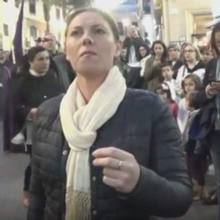 Montsé Pérez por seguiriya a Jesús de la Salud y Pasión, cofradía de la Pasión, a su paso por la Calle Real, frente al Bar Puga, Semana Santa 2017.