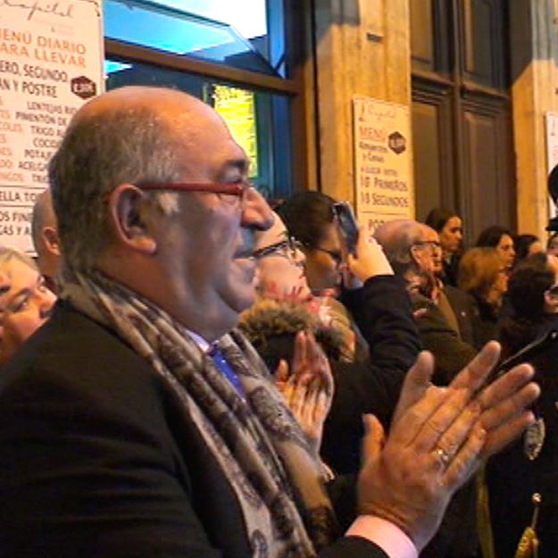 El Niño de las Cuevas al Cristo del Amor, canta una saeta por seguiriya acabada en toná, Cofradía del Amor, a su paso por la calle de Granada frente al Bar Capitol, en la Semana Santa de Almería 2016