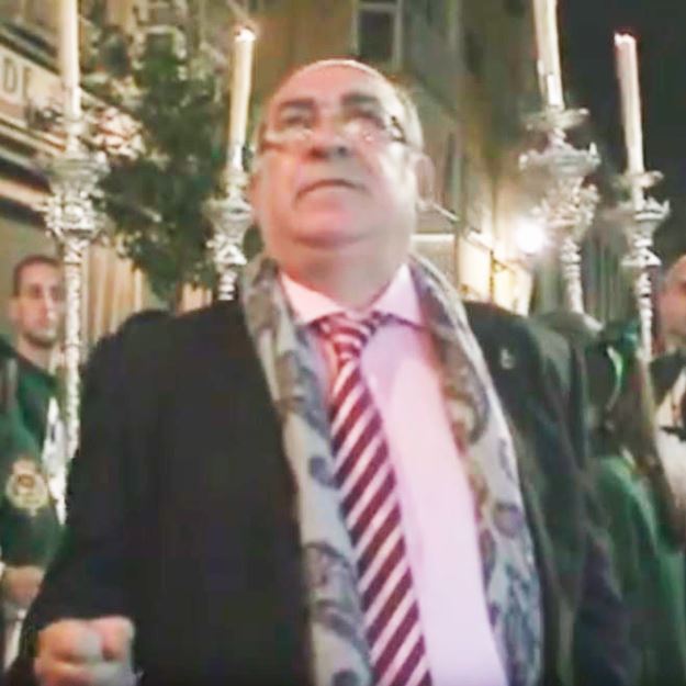 El Niño de las Cuevas canta una saeta por seguiriyas a la Virgen de la Esperanza, Cofradía de los Estudiantes al inicio de la calle Real frente al bar Casa Joaquin a la Semana Santa en Almería 2016