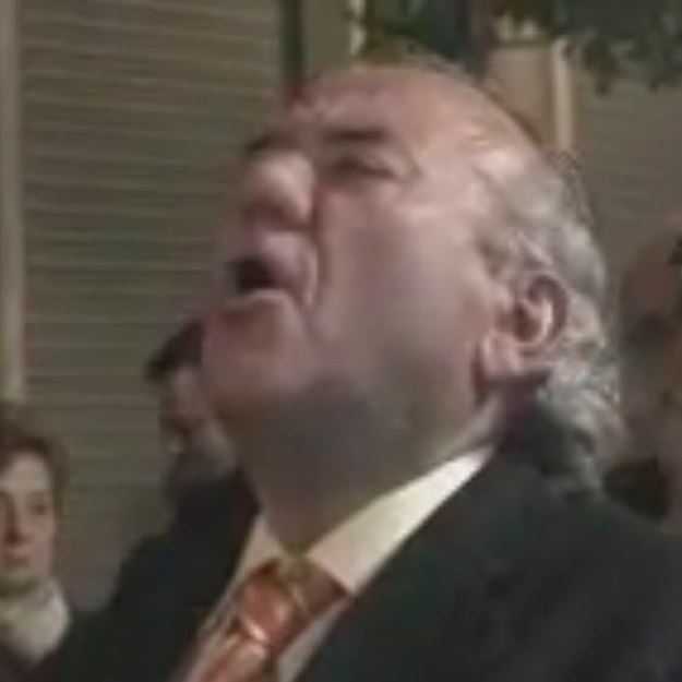 Rafael López canta una saeta por seguiriyas a la Oración en el Huerto, Cofradía de los Estudiantes, al inicio de la calle Real frente al bar Casa Joaquin, en la Semana Santa de Almería 2016.