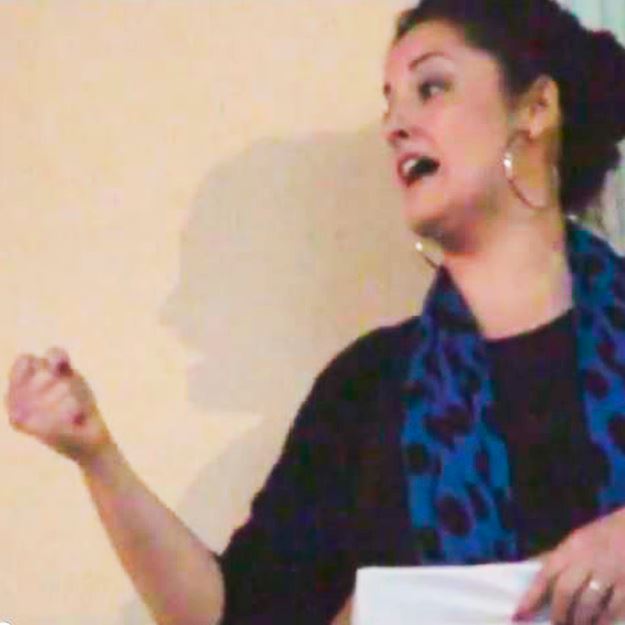 Rocío Segura a la Virgen de la Esperanza, Cofradía de los Estudiantes, desde los balcones de la Asociación contra el Cáncer en la calle Gerona, en la Semana Santa de 2011 de Almería.